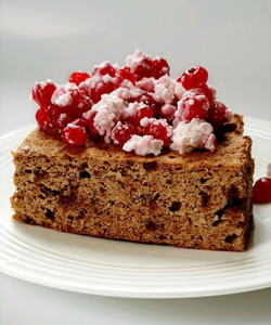 5. След като извадите от фурната, оставете кекса да се охлади напълно преди за разрежете на 10 парчета. По избор гарнирайте с малка шепа горски плодове, чаша бадемово мляко, 1 с.л. кокосова сметана или 2-3 супени лъжици кокосово или ядково кисело мляко.